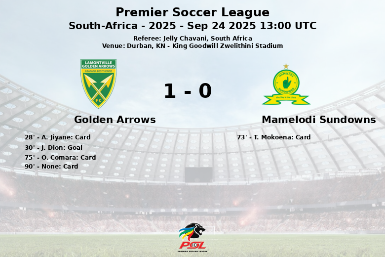 Golden Arrows a remporté une précieuse victoire 1 à 0 contre Mamelodi Sundowns lors d’un match acharné au King Goodwill Zwelithini Stadium de Durban. Le match, comptant pour la 8ème journée de la Premier Soccer League, a été marqué par l’intensité et le jeu tactique des deux équipes.