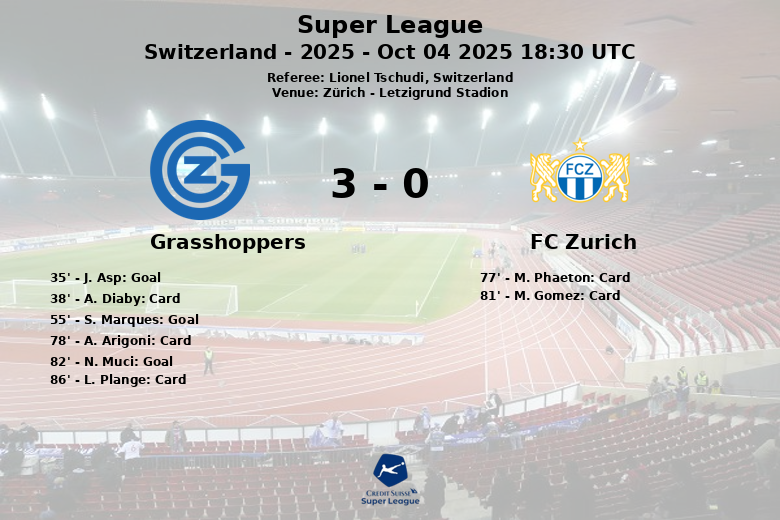 Zurich, Suisse – Dans un match vibrant disputé au Letzigrund Stadion, Grasshoppers a vaincu de manière décisive le FC Zurich, démontrant une supériorité offensive qui s’est traduite par un score final favorable. Le match, comptant pour la huitième journée de la Super League, a été marqué par l’intensité et la rivalité caractéristiques de ce derby suisse.
