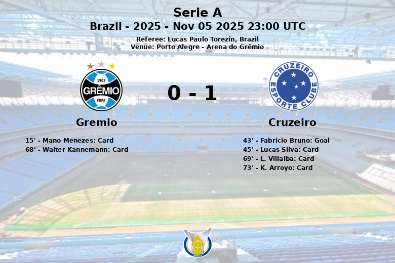 Dans un match disputé à l’Arena do Grêmio, Cruzeiro a remporté une victoire étroite contre Grêmio. Le seul but du match a été marqué à la 43e minute par Fabricio Bruno, sur une passe décisive de William Furtado, donnant ainsi l’avantage à l’équipe visiteuse.