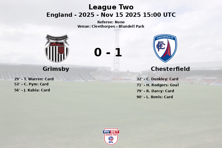 Cleethorpes, Angleterre – Dans un match tendu et marqué par une forte discipline, Chesterfield a remporté la victoire à Blundell Park contre Grimsby Town lors de la 16e journée de League Two. Le match, joué le 15 novembre 2025, a été caractérisé par un jeu physique et des avertissements.