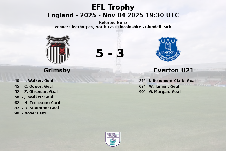 Cleethorpes, North East Lincolnshire – Dans un match palpitant de l’EFL Trophy qui s’est déroulé à Blundell Park, Grimsby a triomphé d’Everton U21 avec un score final de 5 à 3. Le match, comptant pour le tour Northern – 3, a été un festival de buts et d’émotions pour les supporters.