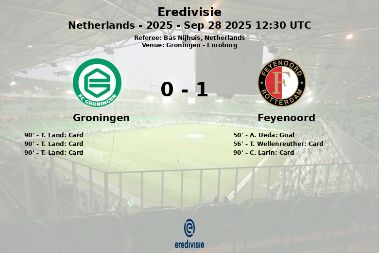 Le seul but du match a été marqué à la 50e minute par A. Ueda, assisté par J. Bos, donnant à Feyenoord l’avantage décisif. Groningen, malgré ses efforts et ses 12 tirs (5 cadrés), n’a pas réussi à percer la défense des visiteurs.