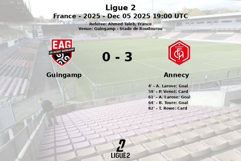 Annecy surprend Guingamp avec une victoire éclatante au Stade de Roudourou
