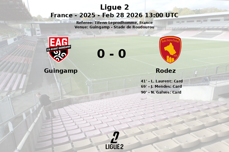 Guingamp, France – Lors d’un match disputé au Stade de Roudourou, Guingamp n’a pas réussi à traduire son écrasante possession de balle (66%) en buts face à un Rodez qui a opposé une solide défense. Malgré 9 tirs, un seul a cadré, reflétant la difficulté de l’équipe locale à percer la ligne défensive de Rodez. Les cinq corners obtenus n’ont pas non plus débouché sur des occasions de but claires.