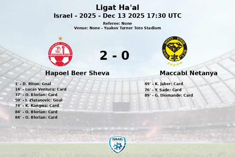 Yaakov Turner Toto Stadium, Israël – L’Hapoel Beer Sheva a remporté une victoire importante face au Maccabi Netanya lors d’un match disputé comptant pour la 14e journée de la Ligat Ha’al. Le match, qui s’est déroulé le 13 décembre 2025, a été intense dès le coup d’envoi.