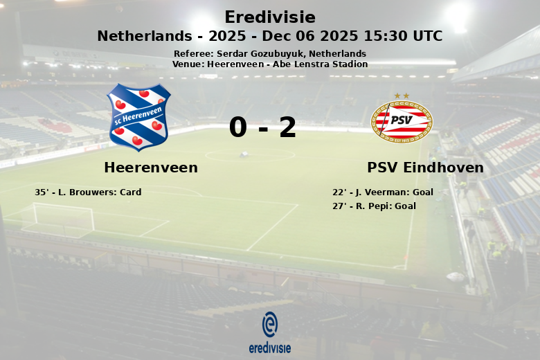 Heerenveen, Pays-Bas – Le PSV Eindhoven a remporté une précieuse victoire au Abe Lenstra Stadion, en battant Heerenveen lors d’un match comptant pour la 15e journée de l’Eredivisie. Le match, arbitré par Serdar Gozubuyuk, a vu le PSV imposer son jeu dès le début.