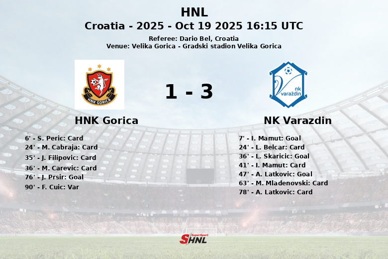 Velika Gorica, Croatie – Le NK Varazdin a remporté la victoire lors de son déplacement au Gradski stadion Velika Gorica, en battant le HNK Gorica lors d’un match de HNL marqué par les cartons et la controverse. Le match, supervisé par l’arbitre Dario Bel, s’est terminé par un score favorable à Varazdin.