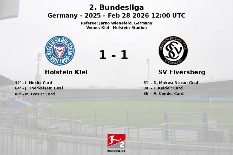 Kiel, Allemagne – Dans un match disputé au Holstein-Stadion, le Holstein Kiel et le SV Elversberg ont fait match nul dans une rencontre qui a tenu les supporters en haleine. Le match, valable pour la 24e journée de la saison régulière de Bundesliga 2, s’est terminé sur un score qui reflète la parité affichée sur le terrain.