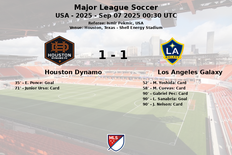 Alors qu’il semblait que le Dynamo allait remporter la victoire, le Galaxy a réussi à égaliser à la 90e minute grâce à un but de Lucas Sanabria, sur une passe de Jalen Neal, frustrant les espoirs locaux. L’arbitre, Ismir Pekmic, a eu fort à faire pour contrôler le match, distribuant plusieurs cartons dans les dernières minutes. Finalement, le match s’est terminé par un match nul qui laisse un goût amer aux deux équipes.
