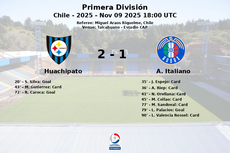 Talcahuano, Chili – Un match riche en émotions et en cartons s’est déroulé à l’Estadio CAP, où Huachipato et Audax Italiano se sont affrontés dans un match comptant pour la Primera División. Huachipato a remporté la victoire dans un match disputé le 9 novembre 2025, avec un score de 2 à 1.