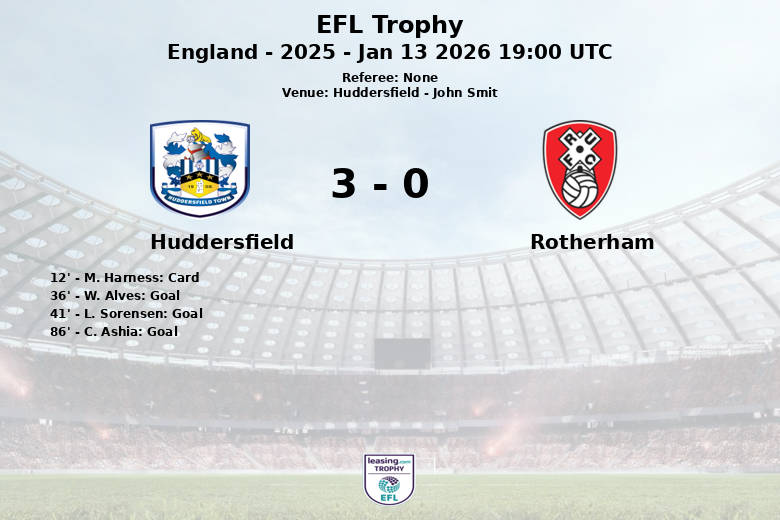 W. Alves a ouvert le score à la 36e minute avec une finition précise, sur une passe décisive de M. McGuane. L’avance a été étendue peu avant la mi-temps, à la 41e minute, avec un but de L. Sorensen. Malgré les efforts de Rotherham pour réagir, la défense de Huddersfield est restée solide, laissant peu d’ouvertures à l’attaque adverse.