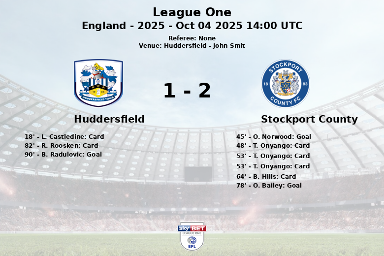 Huddersfield, Angleterre – Un match vibrant de League One entre Huddersfield et Stockport County s’est conclu par un match nul 2-2 au stade John Smit. Le match, correspondant à la 11e journée de la saison 2025, a été marqué par l’intensité et la polémique.