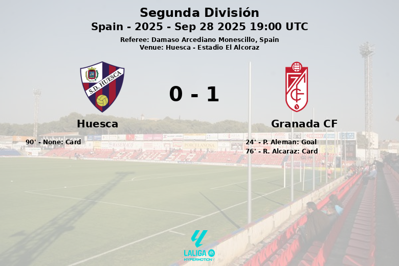 Huesca, Espagne – Dans un match disputé à l’Estadio El Alcoraz, le Granada CF a remporté une précieuse victoire sur le fil face à Huesca, lors de la septième journée de la Segunda División. Le seul but du match a été marqué à la 24ème minute par P. Aleman, sur une passe décisive de S. Faye.