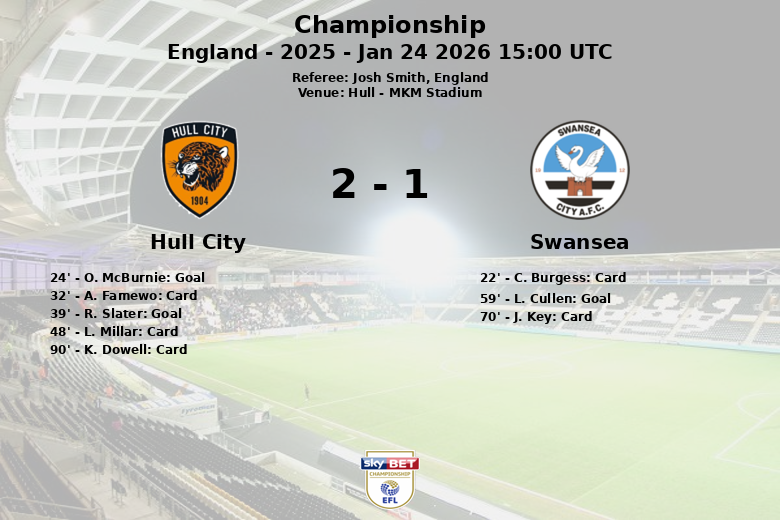 Hull City vs Swansea Jan 24 2026 15:00 UTC