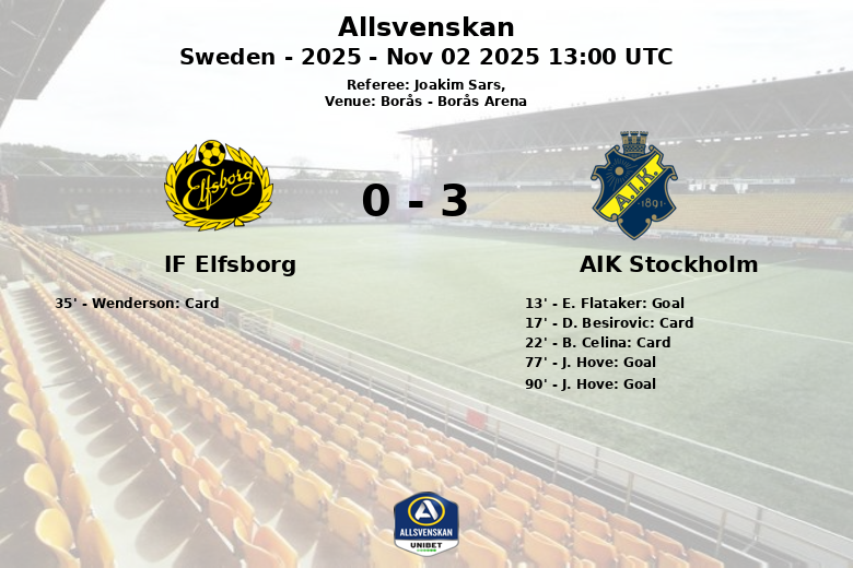 Dans un match vibrant disputé à la Borås Arena, l’AIK Stockholm a battu l’IF Elfsborg sur le score final de 3 à 0. La rencontre, comptant pour la 29e journée de l’Allsvenskan 2025, a été marquée par l’intensité et l’efficacité de l’équipe visiteuse.