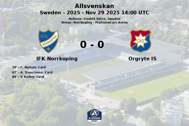 Norrkoping, Suède – Lors d’un match disputé à la PlatinumCars Arena de Norrkoping, l’IFK Norrkoping et l’Orgryte IS se sont affrontés en finale de l’Allsvenskan 2025. La rencontre, arbitrée par Fredrik Klitte, a été caractérisée par la domination de l’IFK Norrkoping, qui a conservé 63 % de la possession du ballon.