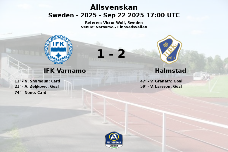 Après la pause, Halmstad a réagi rapidement. V. Granath a égalisé à la 47e minute, sur une passe décisive de N. Mohammed. Le match est devenu encore plus excitant lorsqu’un but contre son camp de V. Larsson à la 59e minute a donné l’avantage à Halmstad. Malgré la poussée finale de Varnamo, le score est resté inchangé, laissant le match sur un match nul qui reflétait l’intensité et la lutte des deux prétendants. L’arbitre, Victor Wolf, a averti un joueur de Varnamo et a signalé un total de 17 fautes tout au long du match.