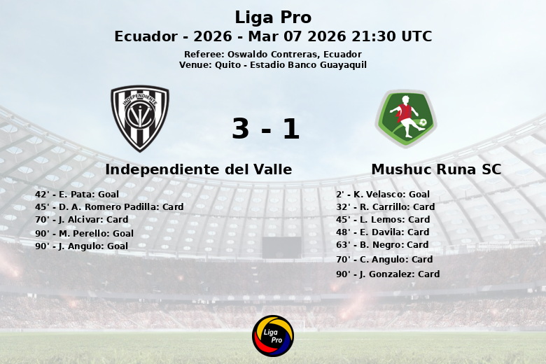 Independiente del Valle vs Mushuc Runa SC Mar 07 2026 21:30 UTC