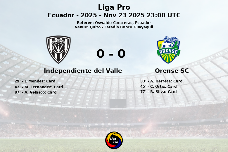 Quito, Équateur – Un match disputé à l’Estadio Banco Guayaquil s’est terminé sur un match nul et vierge entre Independiente del Valle et Orense SC, dans une rencontre correspondant à la Liga Pro. Malgré la domination territoriale d’Independiente del Valle, avec 68% de possession de balle et 20 tentatives de but, seulement 5 d’entre elles ont réussi à être cadrées, tandis que les 11 restantes sont passées à côté. Orense SC, de son côté, a fait preuve de solidité en défense, bien qu’avec moins d’occasions offensives, n’enregistrant que 7 tirs, dont un seul cadré.