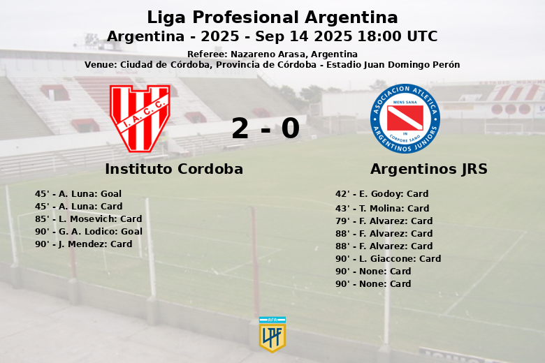 Ciudad de Córdoba, Provincia de Córdoba – Dans un match qui s’est déroulé à l’Estadio Juan Domingo Perón, Instituto Córdoba a vaincu Argentinos Juniors dans un match marqué par l’intensité et des décisions arbitrales controversées. Le match, correspondant à la 8e journée de la Liga Profesional Argentina, saison 2025, s’est terminé sur un score de 2 à 0 en faveur de l’équipe locale.