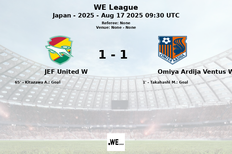 Le match disputé le 17 août 2025 au Japon, comptant pour la deuxième journée de la saison régulière de la WE League, entre Omiya Ardija Ventus W et JEF United W, s’est soldé par un match nul 1-1. Takahashi M. a ouvert le score pour Omiya Ardija Ventus W dès la première minute, suscitant un grand enthousiasme dès le début. Cependant, JEF United W a réagi en seconde période, avec un but de Kitazawa A. à la 65e minute qui a égalisé le score.