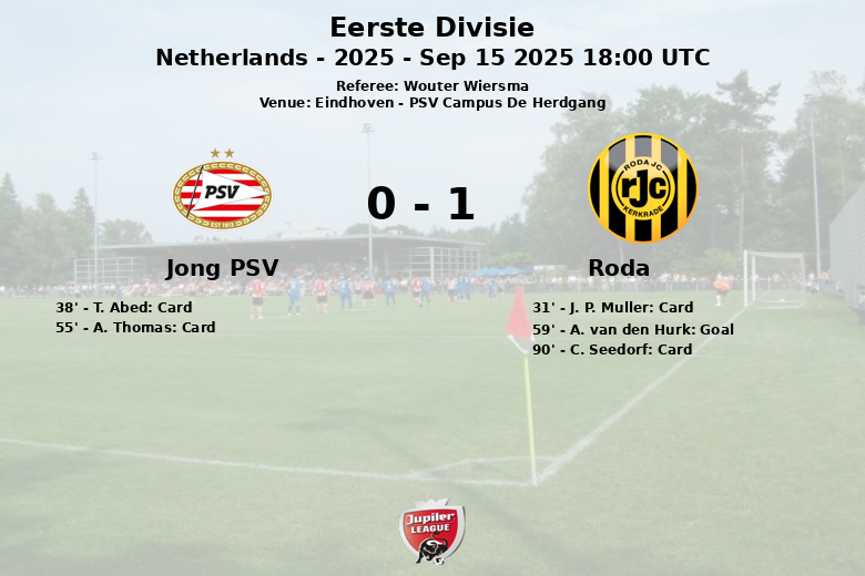 Eindhoven, Pays-Bas – Lors d’un match comptant pour la sixième journée de l’Eerste Divisie, le Roda JC a remporté une courte victoire lors de son déplacement au PSV Campus De Herdgang contre le Jong PSV. Le match, arbitré par Wouter Wiersma, a été caractérisé par un jeu disputé au milieu de terrain, le Jong PSV dominant la possession avec 52 % contre 48 % pour le Roda.