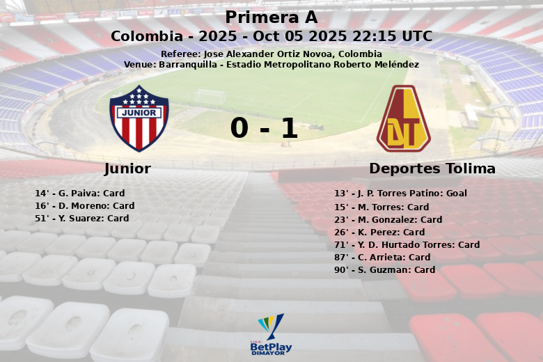 Junior vs Deportes Tolima Oct 05 2025 22:15 UTC