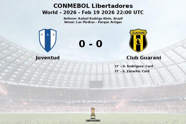 Las Piedras, Uruguay – Juventud et Club Guaraní ont fait match nul zéro à zéro dans un match disputé au Parque Artigas, valable pour le tour de qualification 2 de la CONMEBOL Libertadores 2026. Le match, arbitré par le Brésilien Rafael Rodrigo Klein, a été caractérisé par un jeu tactique et beaucoup de duels au milieu de terrain.