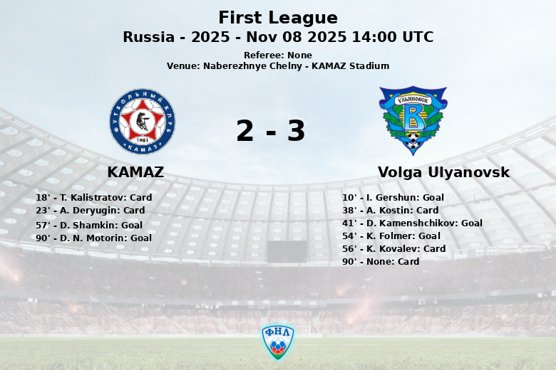 Naberezhnye Chelny, Russie – Dans un match disputé au stade KAMAZ, comptant pour la 18ème journée de la First League, Volga Ulyanovsk a vaincu KAMAZ dans une rencontre pleine d’émotions et de rebondissements.