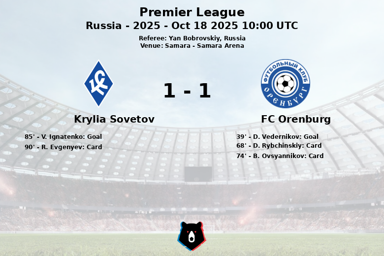En seconde mi-temps, Krylia Sovetov a intensifié sa pression, cherchant l’égalisation avec insistance. Leur domination du ballon, avec 58% de possession, s’est traduite par de nombreuses occasions de but. Leur persévérance a finalement porté ses fruits à la 85e minute, lorsque V. Ignatenko, sur une passe de I. Akhmetov, a réussi à battre le gardien d’Orenburg.