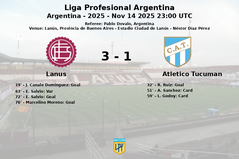 Lanus vs Atletico Tucuman Nov 14 2025 23:00 UTC