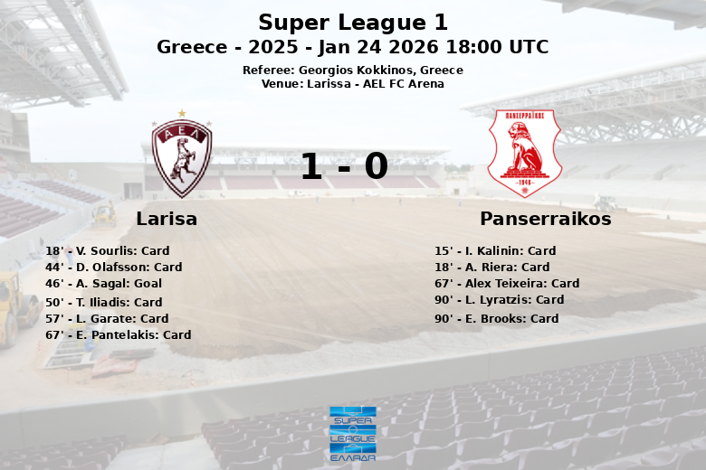 Larissa, Grèce – Larisa a remporté une victoire à domicile contre Panserraikos dans un match acharné à l’AEL FC Arena, caractérisé par une forte intensité et de nombreux avertissements. Le seul but du match a été marqué à la 46e minute par A. Sagal, offrant ainsi les trois points à l’équipe locale.