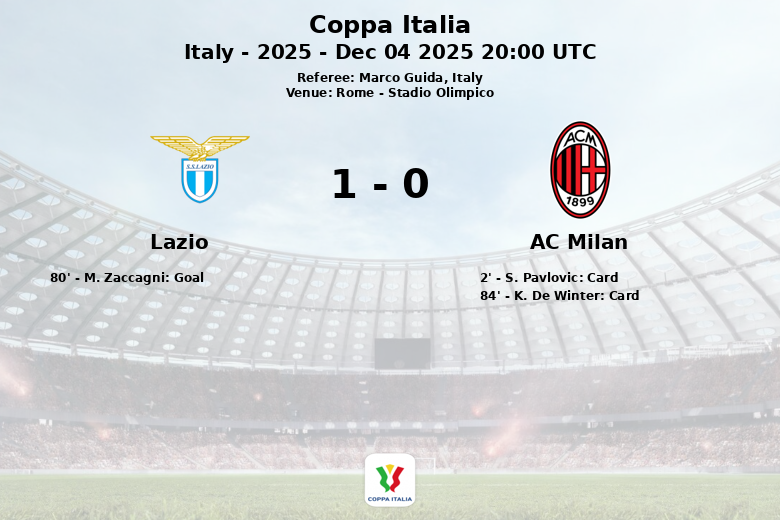 Rome, Italie – Dans un match disputé au Stadio Olimpico, la Lazio a remporté la victoire contre l’AC Milan au troisième tour de la Coppa Italia. Le match, joué le 4 décembre 2025, a été le théâtre d’une bataille acharnée au milieu de terrain.