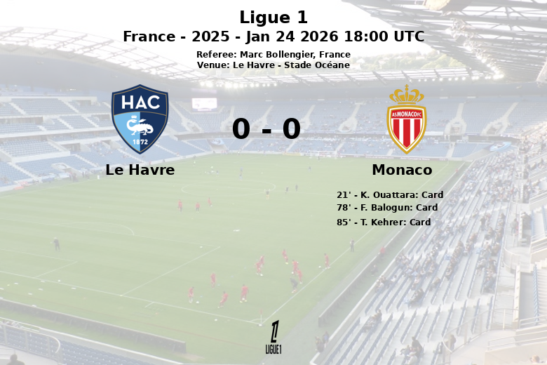 Le Havre and Monaco played to a draw that left both teams wanting more, in a match held at the Stade Océane. The game, corresponding to matchday 19 of Ligue 1, was characterized by intensity and physical play, reflected in the numerous fouls committed by both sides.