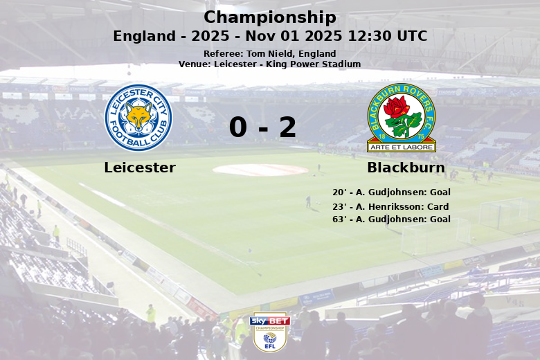 Leicester City, bien qu’ayant généré un total de 11 tirs, n’a réussi à en envoyer qu’un seul cadré, ce qui témoigne d’un manque de précision. De plus, ils ont commis 7 fautes et n’ont reçu aucun avertissement. De son côté, Blackburn Rovers, avec 8 tirs au total, a fait preuve d’une plus grande précision avec 5 tirs cadrés. Ils ont commis 12 fautes et ont reçu un carton jaune. L’arbitre, Tom Nield, a maîtrisé le match sans incidents majeurs. Au final, Blackburn a remporté la victoire dans un match où l’efficacité a surpassé la possession.