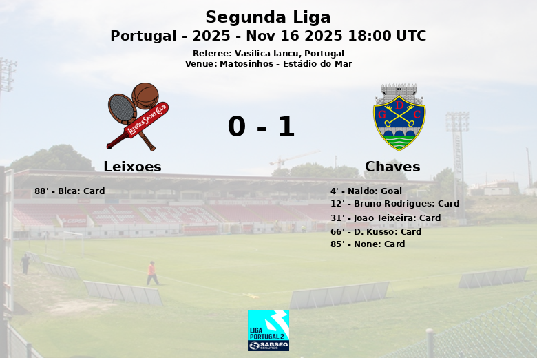 Le match, arbitré par Vasilica Iancu, a été caractérisé par un jeu haché et tactique, reflété par les nombreux cartons jaunes montrés aux deux équipes. Chaves a reçu trois avertissements (Bruno Rodrigues, Joao Teixeira et D. Kusso), tandis que Leixões a reçu un carton jaune (Bica). Malgré les efforts des deux équipes, le score est resté inchangé.