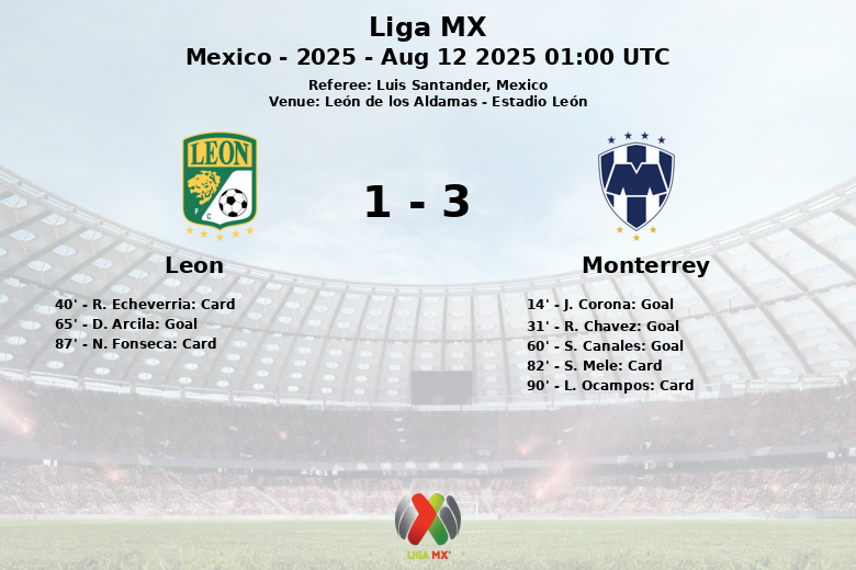 En deuxième mi-temps, Monterrey a continué à presser, et S. Canales a marqué à la 60e minute, consolidant l’avance de son équipe. León a répondu à la 65e minute avec un but de D. Arcila, assisté par I. Diaz, mais cela n’a pas suffi à inverser la situation. Le match est devenu physique, avec plusieurs cartons jaunes montrés à S. Mele de Monterrey à la 82e minute, N. Fonseca de León à la 87e minute et L. Ocampos de Monterrey à la 90e minute.