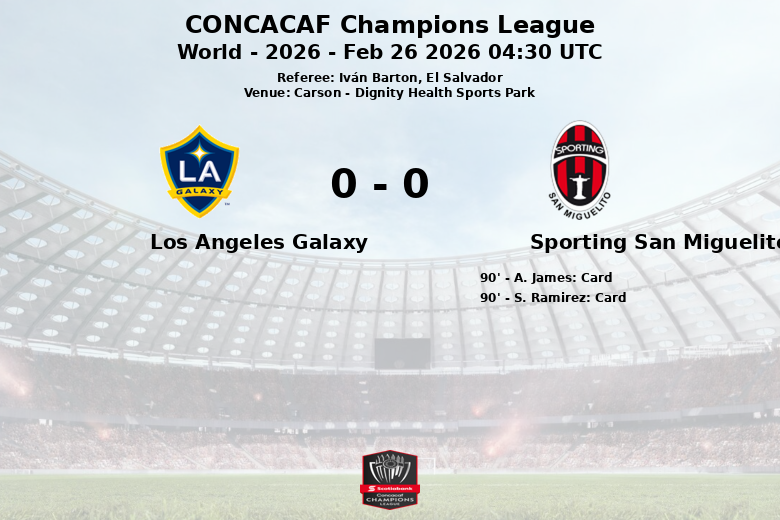 De son côté, Sporting San Miguelito a opté pour une stratégie défensive, cherchant à exploiter les contre-attaques. Malgré une possession plus faible (27 %), les Panaméens ont réussi à générer 7 tirs, bien qu’aucun d’entre eux n’ait inquiété le gardien de but adverse. Le match a été intense et disputé, avec un total de 19 fautes commises par les deux équipes, ce qui a entraîné deux cartons jaunes pour Sporting San Miguelito en fin de match. Los Angeles Galaxy a reçu un carton rouge pendant le match. L’arbitre salvadorien Iván Barton était en charge de l’arbitrage du match de la phase des 32èmes de finale de la Ligue des Champions de la CONCACAF.
