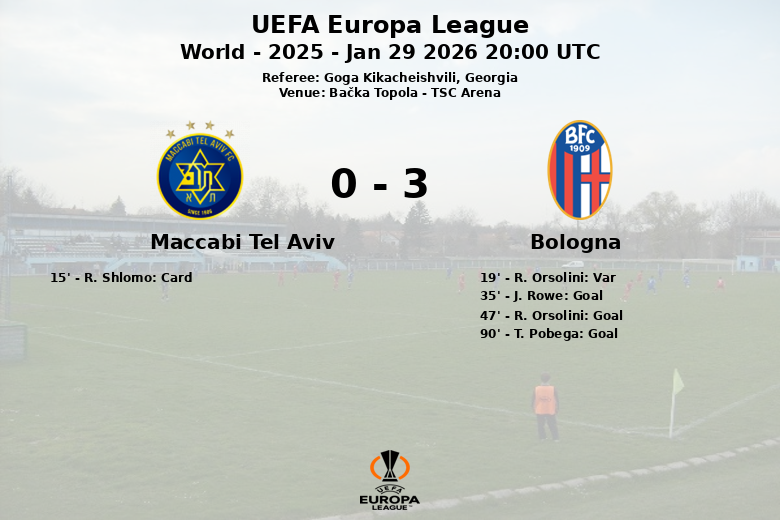 Maccabi Tel Aviv vs Bologna Jan 29 2026 20:00 UTC