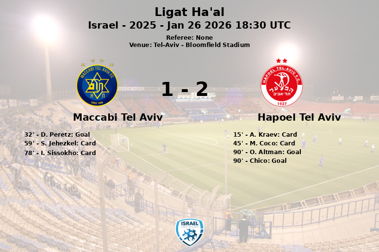 Le match entre le Maccabi Tel Aviv et l’Hapoel Tel Aviv au Bloomfield Stadium a été passionnant du début à la fin, se terminant sur un score final de 1 à 2. Le Maccabi a dominé la possession avec 55 %, montrant une supériorité dans le contrôle du jeu. Malgré un carton jaune à Kraev à la 15e minute, l’Hapoel est resté résolu. Le Maccabi a ouvert le score à la 32e minute avec un but de D. Peretz, sur une passe décisive de H. Varela, consolidant ainsi sa domination territoriale. La première mi-temps s’est terminée par un autre avertissement, cette fois pour M. Coco de l’Hapoel. En deuxième mi-temps, les deux équipes ont intensifié leur jeu physique, ce qui s’est traduit par des cartons jaunes attribués à S. Jehezkel du Maccabi et plus tard à I. Sissokho. Au moment où il semblait que le Maccabi allait remporter la victoire, l’Hapoel a surpris avec deux buts dans les dernières minutes. O. Altman a marqué à la 90e minute, sur une passe décisive de X. Silva, et presque immédiatement après, Chico a marqué le but égalisateur. Bien qu’il ait eu moins de possession et moins de tirs, l’Hapoel a démontré une grande capacité à réagir dans les moments cruciaux. Le Maccabi, bien que supérieur en termes de possession et avec plus de tirs cadrés, n’a pas pu conserver son avance et a été surpris par la poussée finale de l’Hapoel. Le match a été caractérisé par un jeu disputé, avec un total de 27 fautes commises par les deux équipes et plusieurs cartons jaunes distribués.