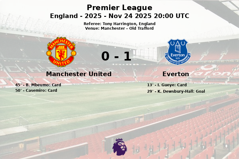 Manchester, Angleterre – Un Everton combatif a subi une défaite contre Manchester United à Old Trafford dans un match marqué par l’adversité. Bien qu’ayant joué à dix dès la 13e minute après le carton rouge de I. Gueye, Everton a réussi à prendre l’avantage à la 29e minute grâce à un but de K. Dewsbury-Hall. Cependant, la supériorité numérique et la domination du ballon de Manchester United, avec 70 % de possession, se sont avérées décisives. L’équipe locale a généré un total de 24 tirs, dont 6 cadrés, et a bénéficié de 9 corners. Everton, de son côté, s’est battu avec acharnement, mais son attaque s’est limitée à seulement 3 tirs, avec une seule occasion nette. Manchester United a commis 12 fautes et a reçu deux cartons jaunes, tandis qu’Everton a commis 9 fautes et a subi un carton rouge.