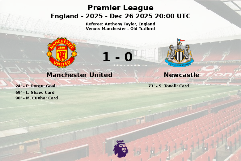 Manchester, Angleterre – Dans un match disputé à Old Trafford, Manchester United a battu Newcastle lors de la 18e journée de Premier League. Le but de P. Dorgu à la 24e minute a donné l’avantage à l’équipe locale, qui l’a défendu avec acharnement face à une équipe de Newcastle qui a dominé la possession de balle avec 66%.