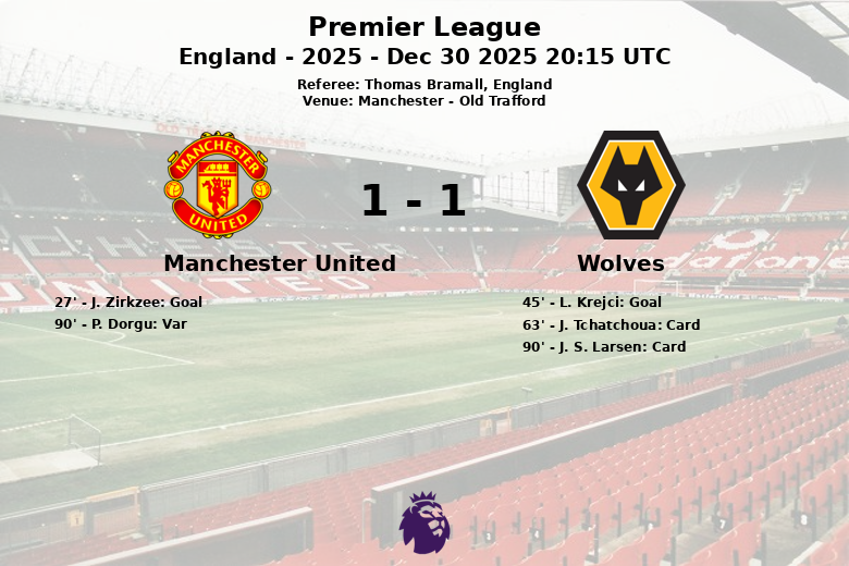 À la 90e minute, les supporters locaux ont célébré ce qui semblait être le but de la victoire, mais la VAR est intervenue pour refuser le but de P. Dorgu pour hors-jeu, déclenchant la frustration à Old Trafford. De plus, le match a été marqué par deux cartons jaunes pour Wolves. L’arbitre du match, Thomas Bramall, a été contraint d’avertir J. Tchatchoua et J. S. Larsen.