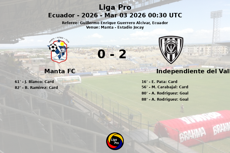 Manta FC, bien qu’ayant tenté de répondre, n’a pas réussi à concrétiser ses occasions, terminant le match avec zéro tirs cadrés sur six tentatives au total. Independiente del Valle, quant à lui, a fait preuve d’une plus grande efficacité avec 4 tirs cadrés sur un total de 20. L’arbitre du match, Guillermo Enrique Guerrero Alcivar, d’Équateur, a signalé 17 fautes pour Manta FC et 10 pour Independiente del Valle. Le match s’est déroulé dans le cadre de la deuxième manche de la saison régulière 2026 de la Liga Pro.