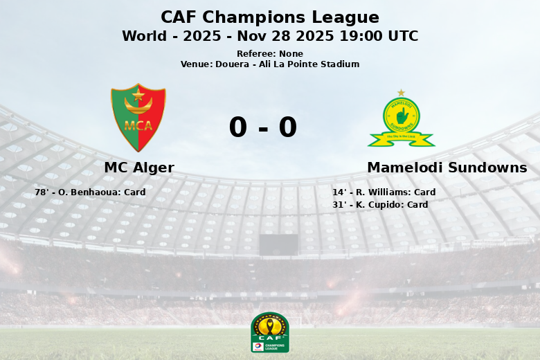Douera, Algérie – Dans un match marqué par l’intensité et la rigueur tactique, le MC Alger et Mamelodi Sundowns ont fait match nul 0-0 au stade Ali La Pointe, lors de la deuxième journée de la Ligue des champions de la CAF. Le match, joué sous le regard attentif des supporters, a été caractérisé par une nette domination de la possession de balle en faveur de Mamelodi Sundowns, qui a dominé 68% du temps. Cependant, malgré cette supériorité dans la possession, l’équipe sud-africaine n’a pas réussi à traduire sa domination en occasions de but claires, terminant le match sans aucun tir cadré.