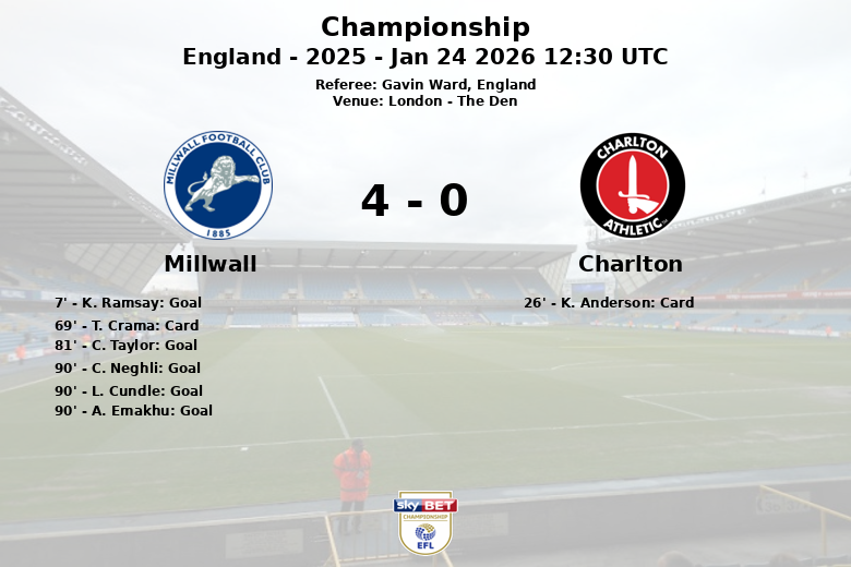 Millwall vs Charlton Jan 24 2026 12:30 UTC