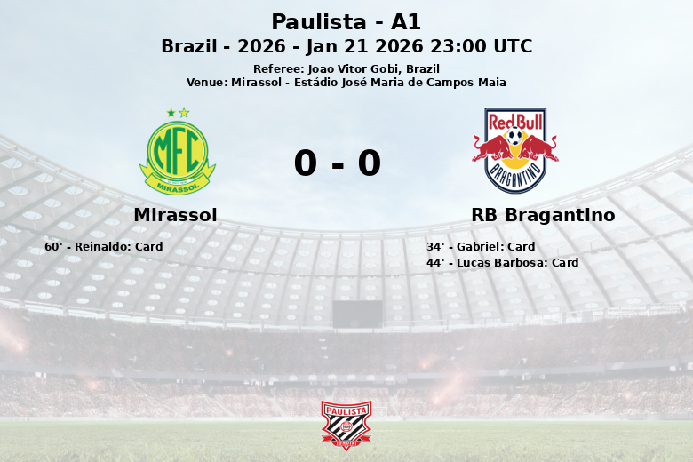 RB Bragantino, de son côté, s’est concentré sur une stratégie plus directe, avec 41% de possession. Cependant, leurs cinq tentatives ont toutes échoué hors cadre. Le match, comptant pour la quatrième journée de la saison régulière de Paulista A1, a également été interrompu par six fautes de chaque côté et deux cartons jaunes distribués aux joueurs de RB Bragantino (Gabriel et Lucas Barbosa) et un à Reinaldo de Mirassol, reflétant la dureté de la rencontre. Sous l’arbitrage de Joao Vitor Gobi, le match s’est avéré être une confrontation tactique où les défenses ont pris le dessus sur les attaques.