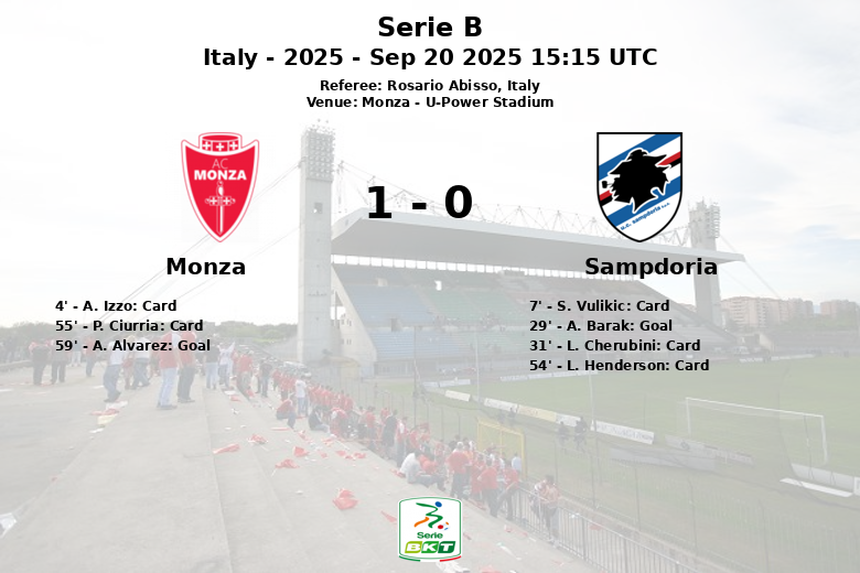 Monza, le 20 septembre 2025 – Le stade U-Power a été le théâtre d’un match nul intense entre Monza et la Sampdoria lors d’un match de Serie B. La rencontre, marquée par des cartons et des émotions, s’est soldée par un score de un à zéro.