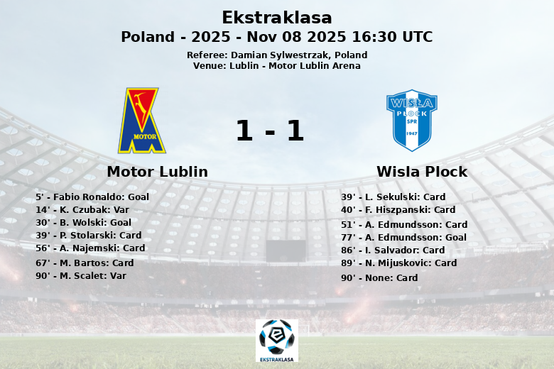 Match nul tendu à Lublin : Motor Lublin et Wisla Plock se neutralisent dans un match disputé