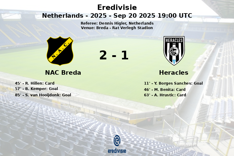 Breda, Pays-Bas – Dans un match disputé au Rat Verlegh Stadion, le NAC Breda et Heracles Almelo ont fait match nul dans une rencontre riche en moments de tension. Heracles a pris l’avantage tôt, à la 11e minute, grâce à un but de Y. Borges Sanches, conservant cet avantage jusqu’à la mi-temps.